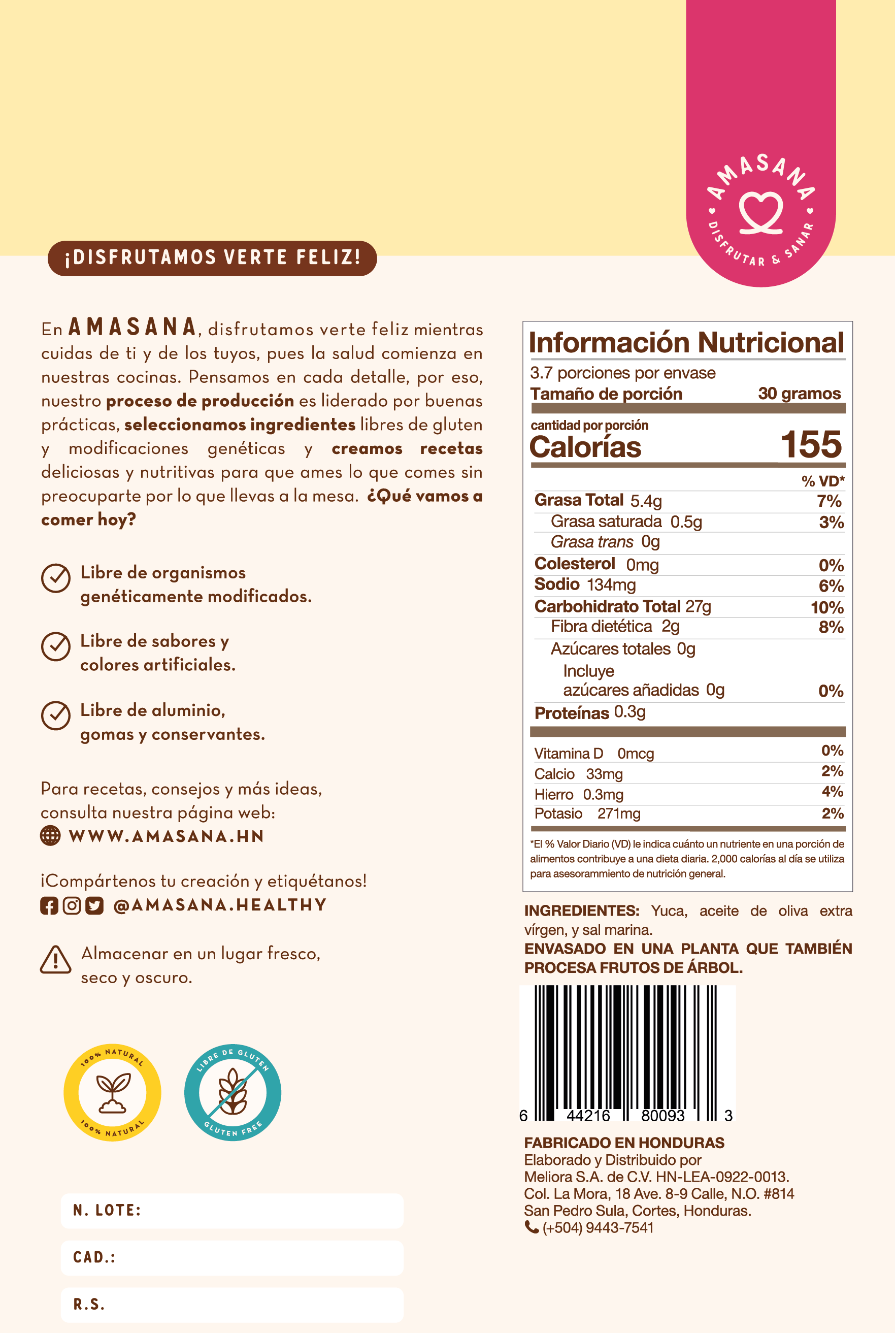 ¡Nuevos Casabe Chips de AMASANA! Un snack, infinitas posibilidades. Crujientes, versátiles y lo mejor de todo... ¡buenísimos! Hechos a base de yuca, tostados al horno con aceite de oliva extra virgen y acabados con un toque de sal marina, te van a enamorar.