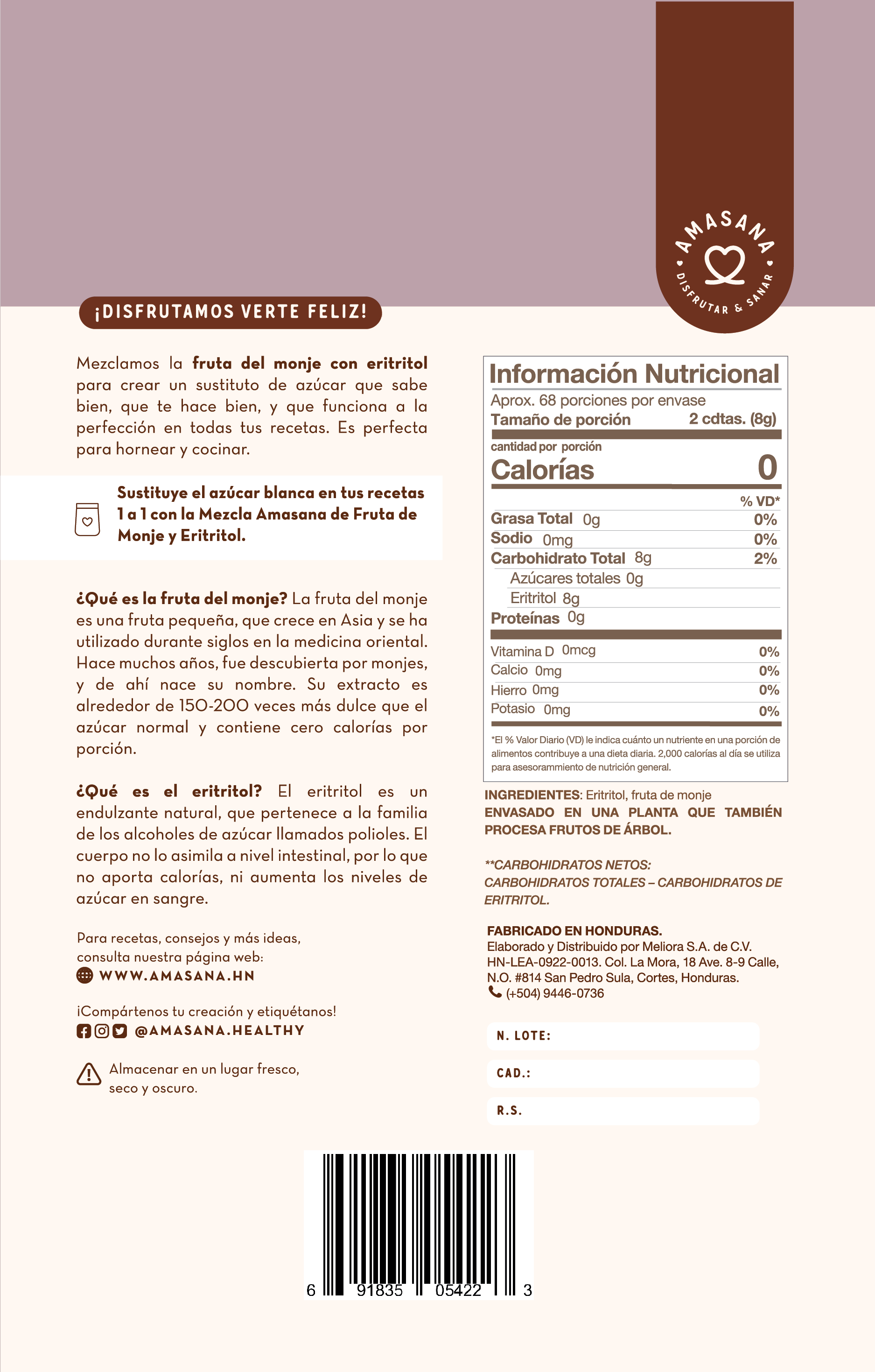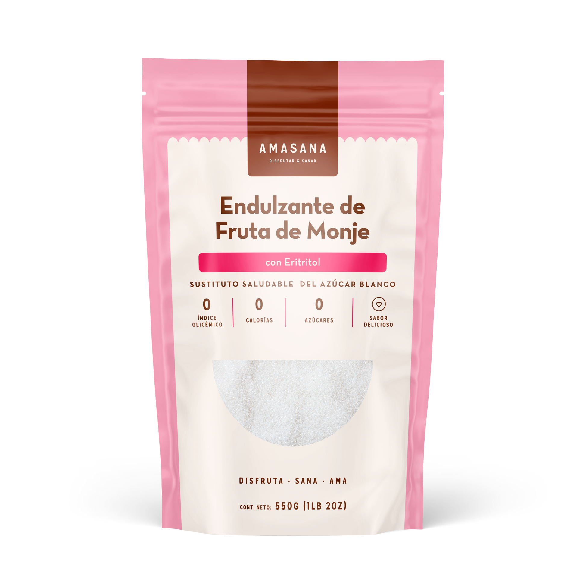 Sustituye el azúcar blanca en tus recetas 1 a 1 con la Mezcla Amasana de la Fruta del Monje y Eritritol.