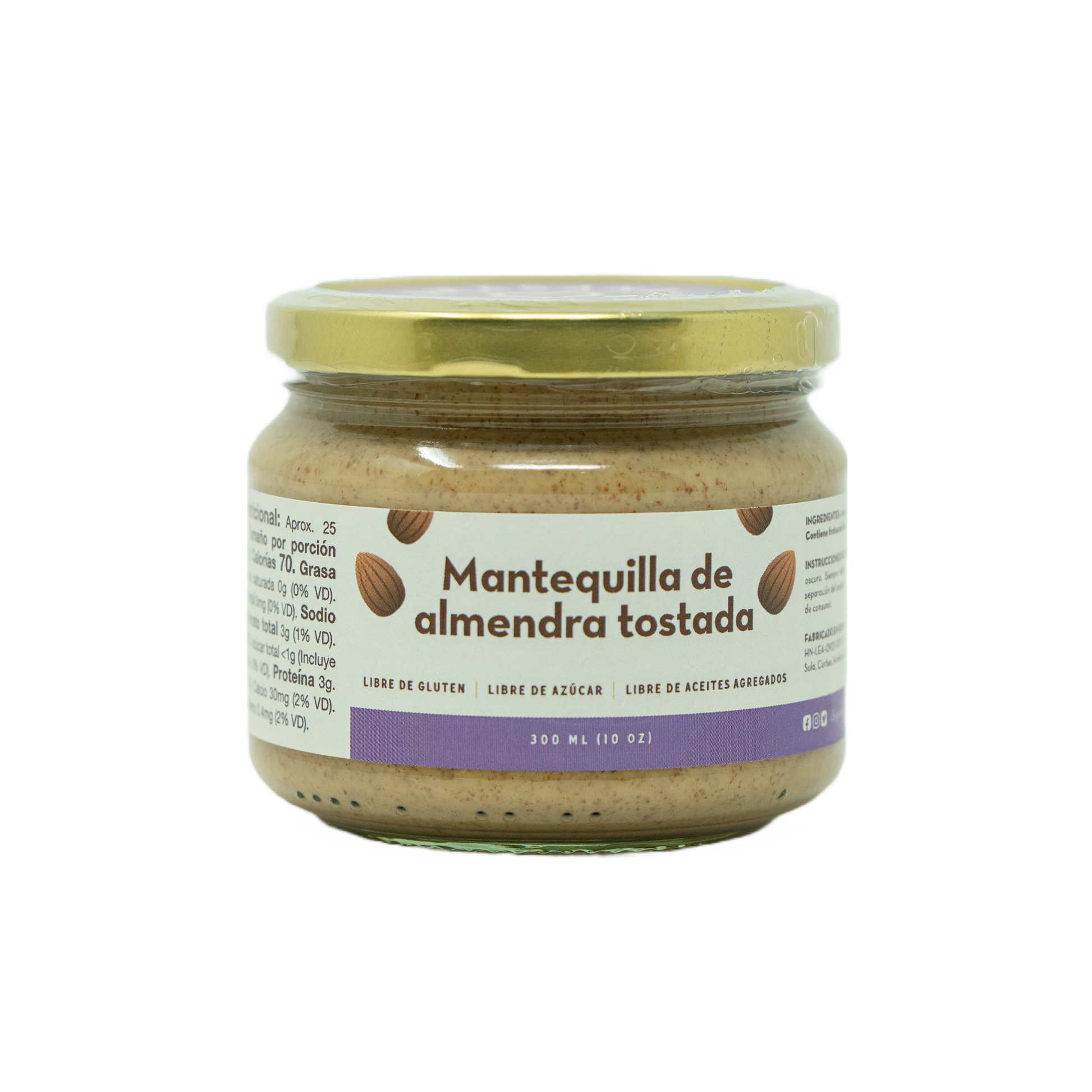 Nuestra mantequilla de almendra tostada es hecha con un solo ingrediente: almendras, tostadas lentamente en el horno para poder acentuar su dulzor natural. Es suave, cremosa, y muy versátil.