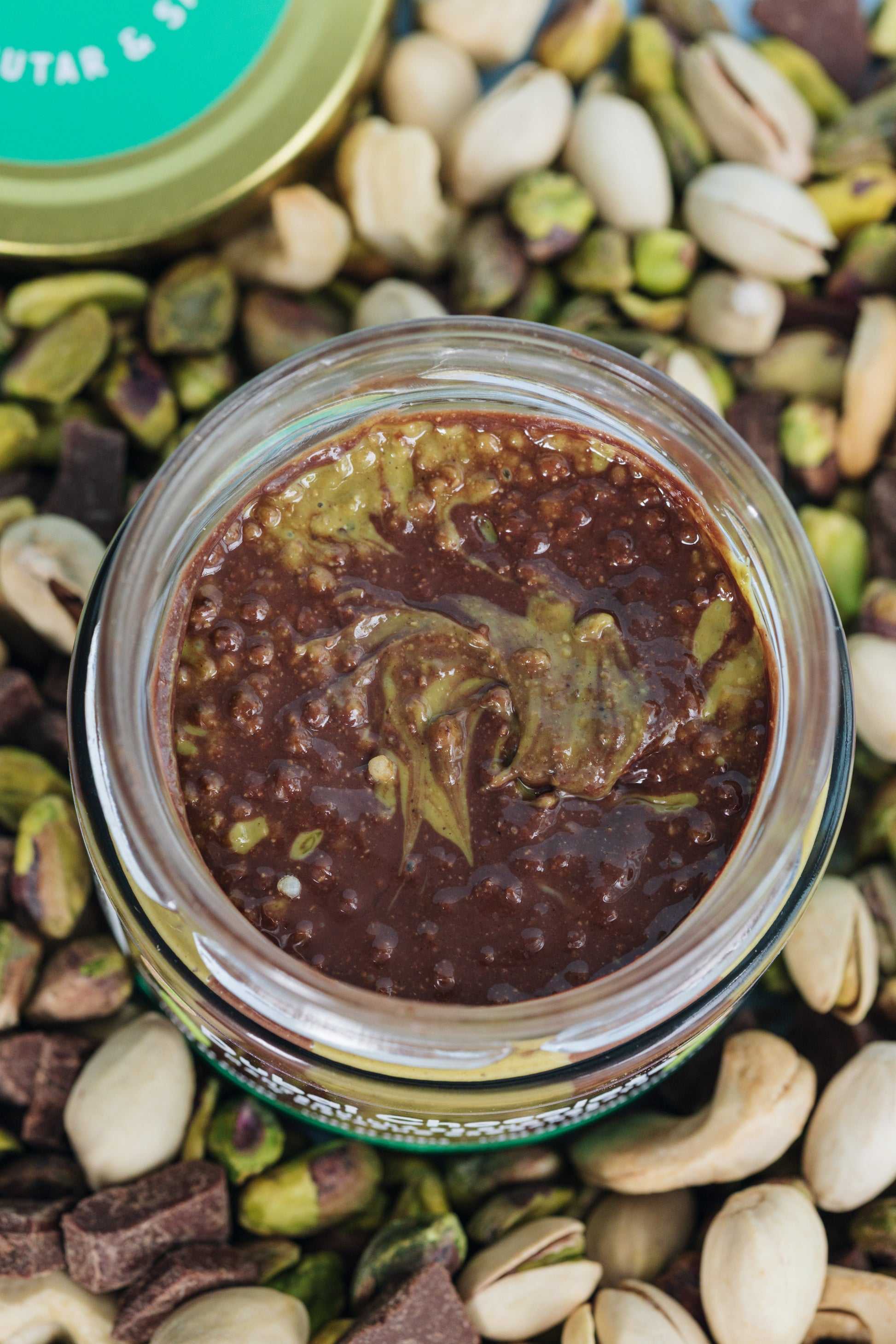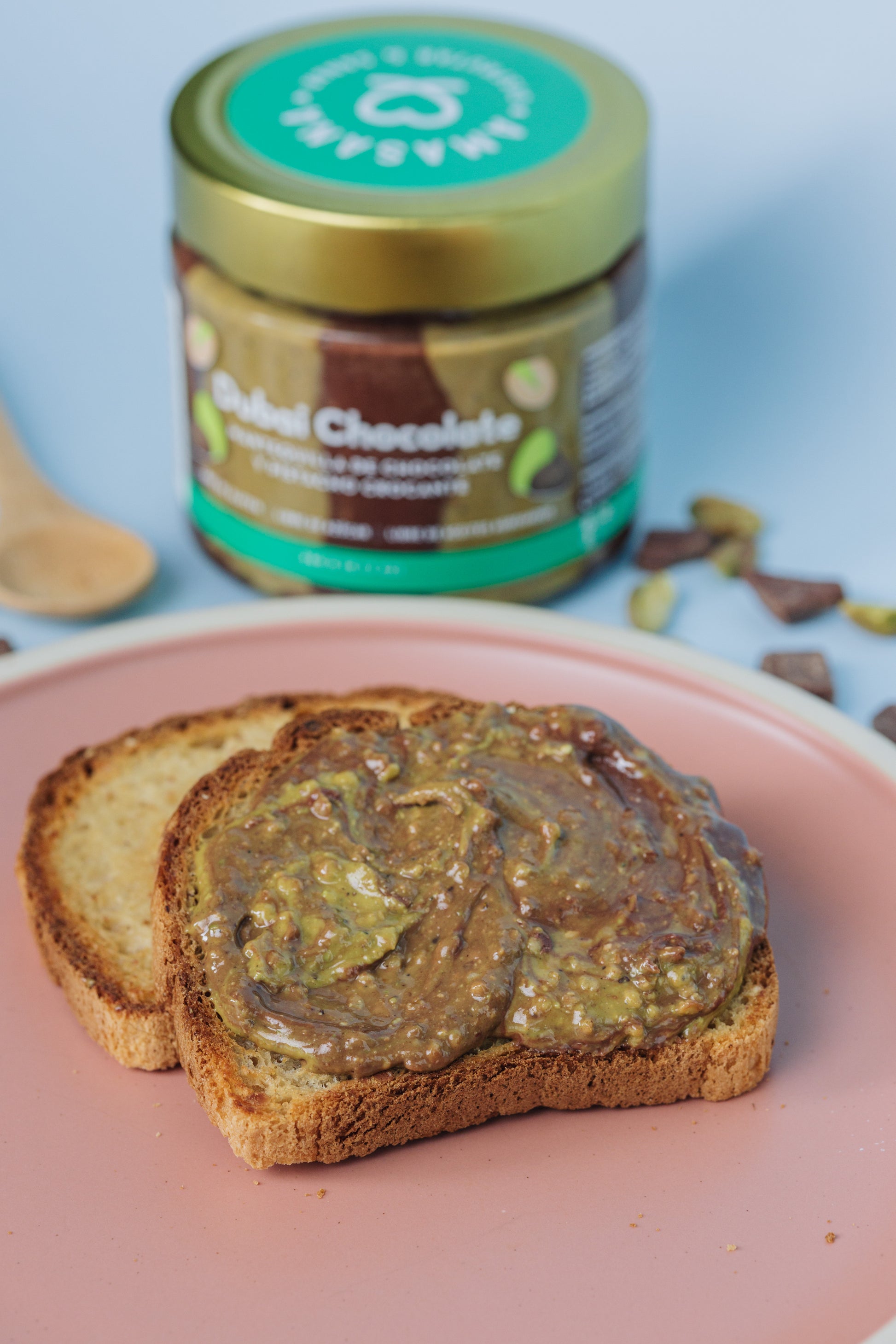 Mantequilla de chocolate y pistacho crocante