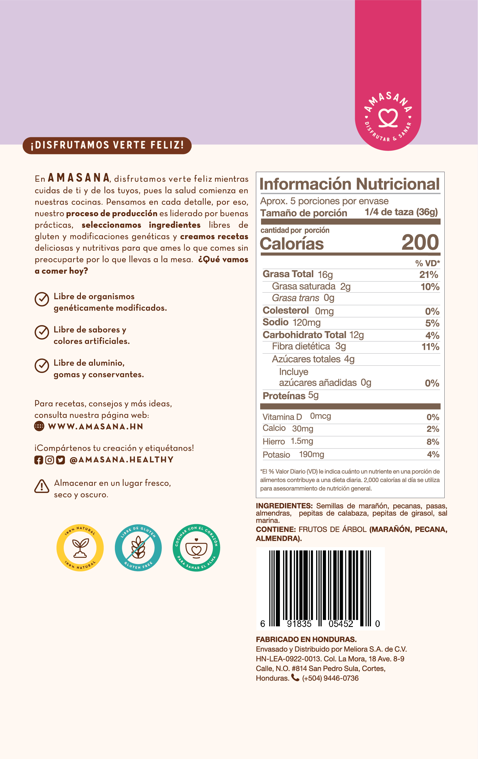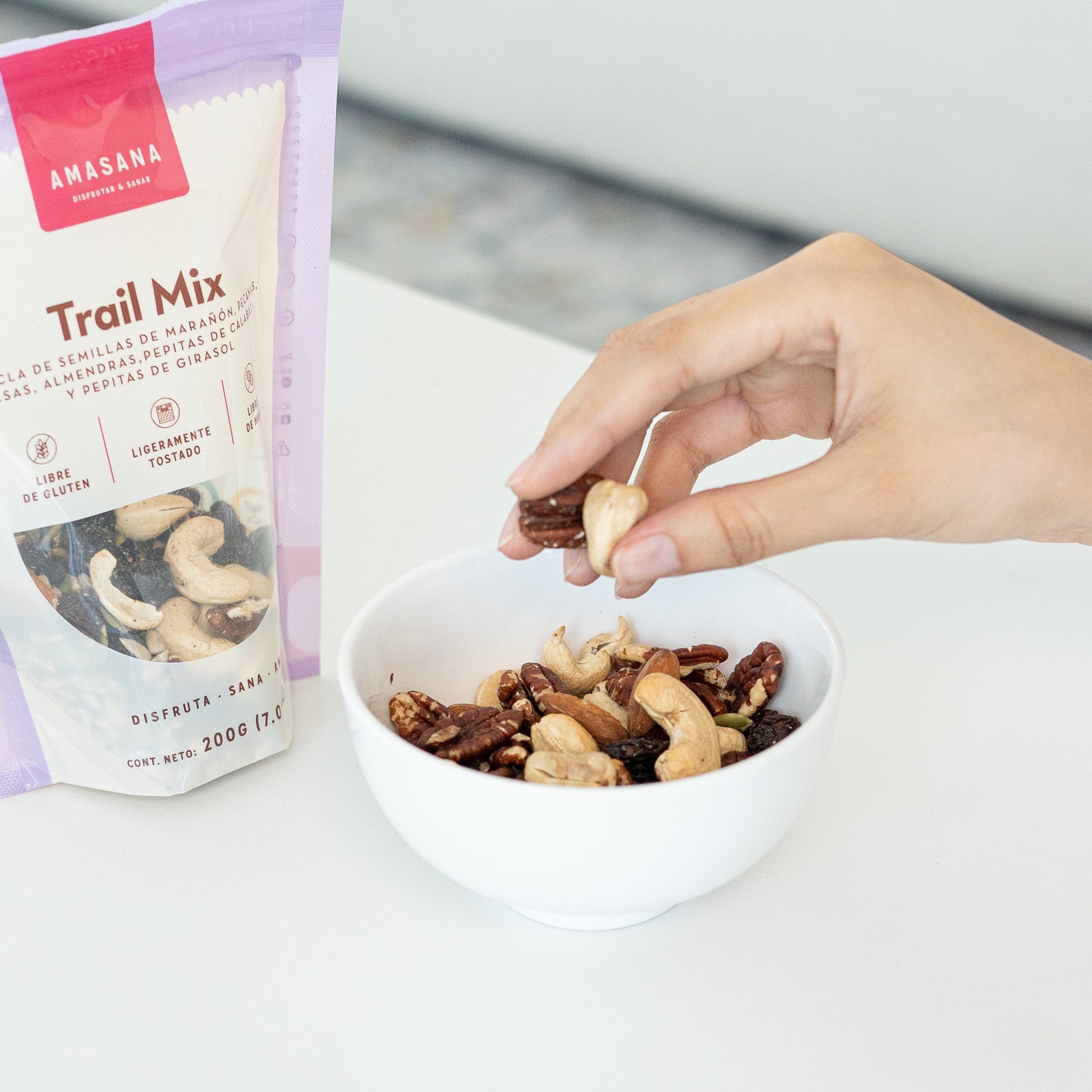 Nuestro Trail Mix no lleva ningún tipo de aceite, preservante o saborizante artificial, ya que nuestra prioridad es cuidar siempre de tu salud.